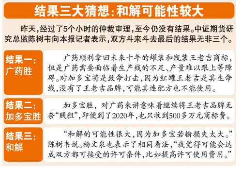 另外,广药此前一直对媒体表示,加多宝公司没有按照合同协定的内容正确使用王老吉商标。如果最后达成和解,双方重签合同,必然将加上明确的规范使用内容。