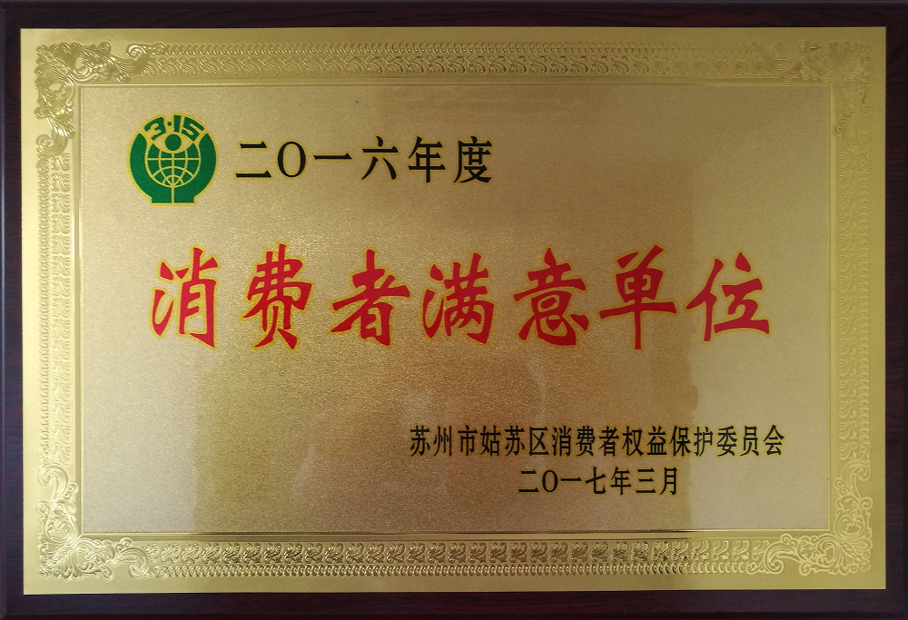 2016年获得苏州市姑苏区消费者权益保护委员会评定为“消费者满意单位”。